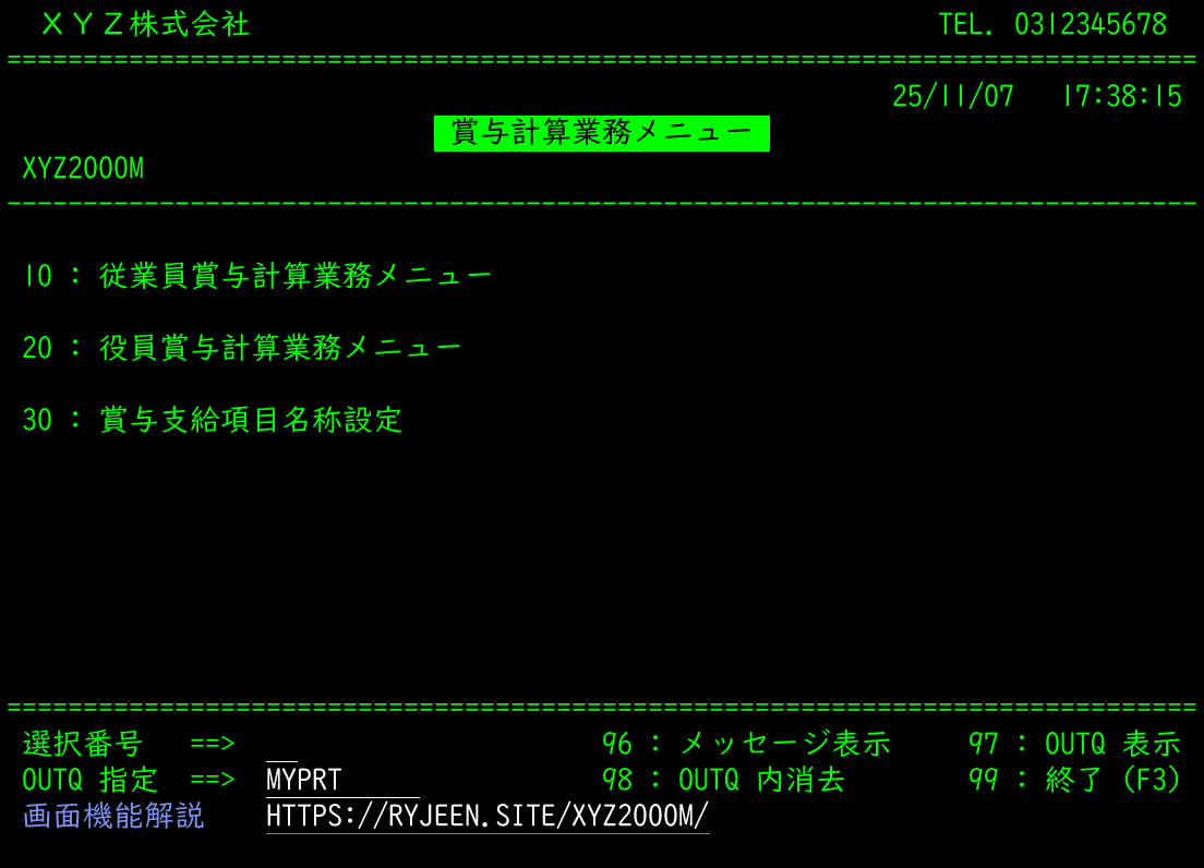 賞与計算業務メニュー(XYZ2000M)