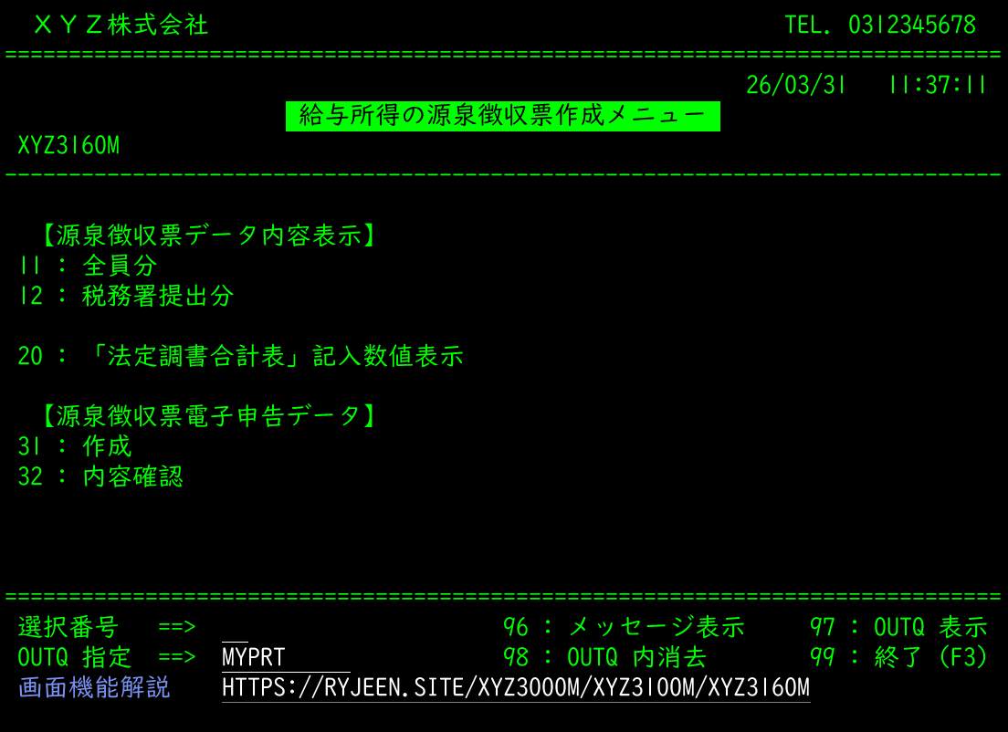 年末調整業務メニュー(XYZ3000M)